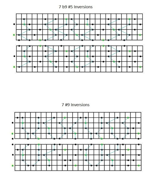 Locrian – Pentatonic Minor on 3, Pentatonic Major on 5
