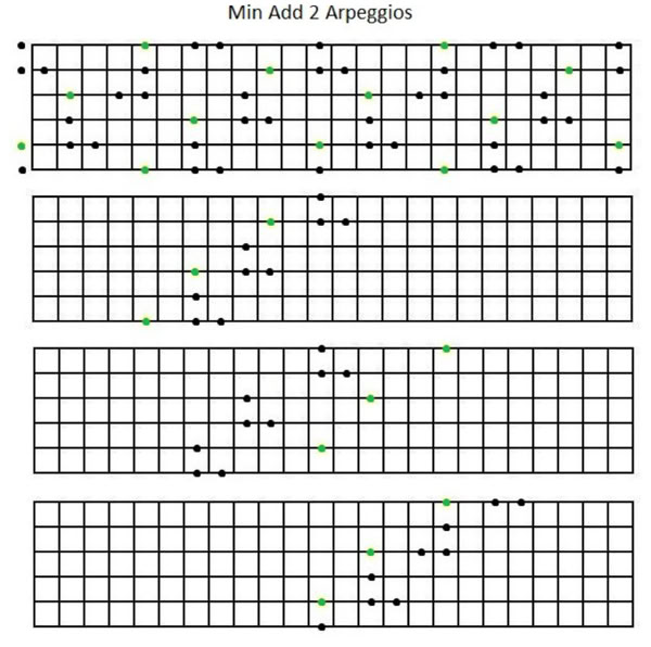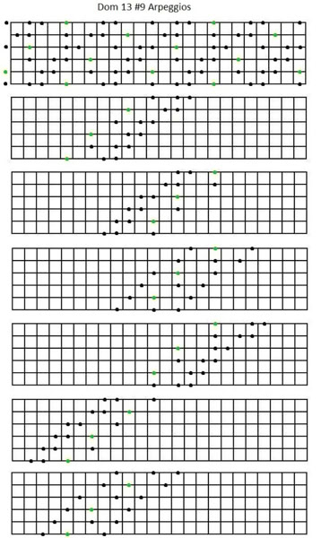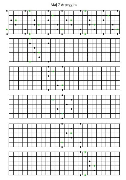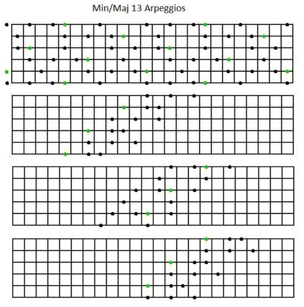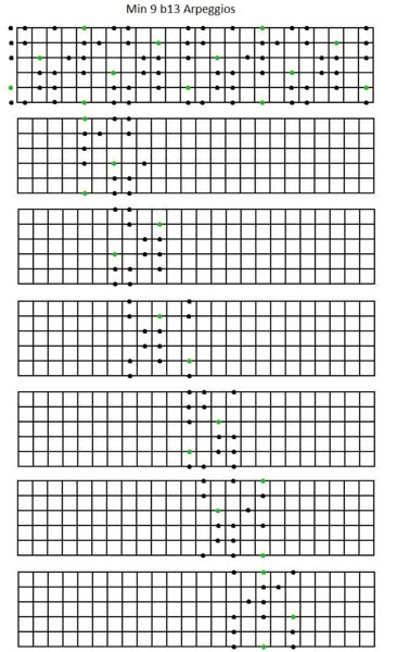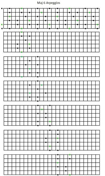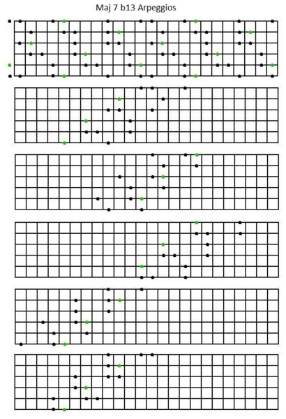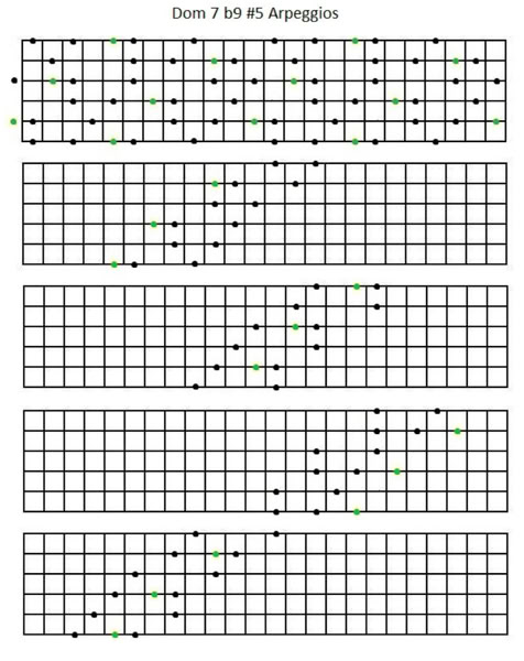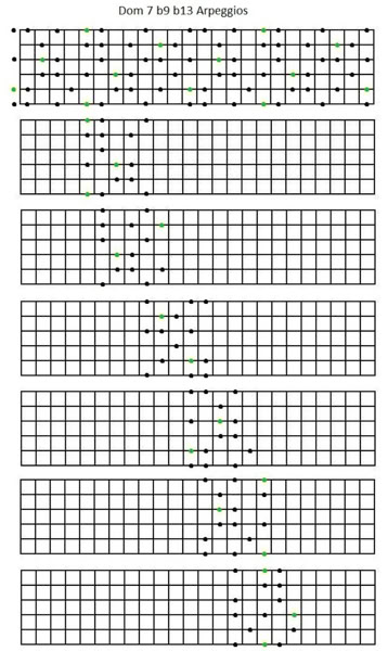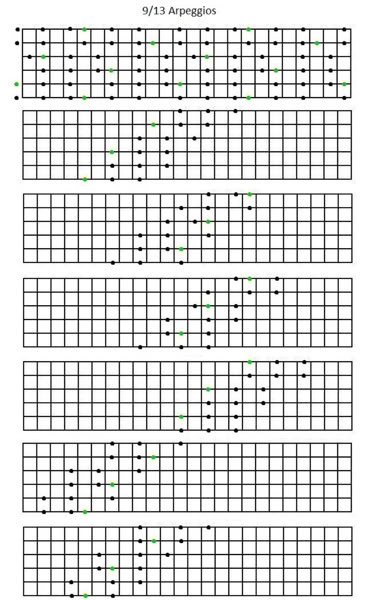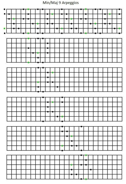 There are also two types of arpeggios I have shown, caged arpeggios and diagonally ascending arpeggios. I have consolidated all formulas into one octave at a time. For example an arpeggio with a formula containing a 9 will be shown as a 2 instead. There's a ton of great riff material there. Some of the arpeggios are not as shreddable or sweepable as others, they are nonetheless each a unique sound or taste. In order to augment these arpeggio diagrams, I have included a diagram of arpeggios that exceed an octave with stacked intervals.