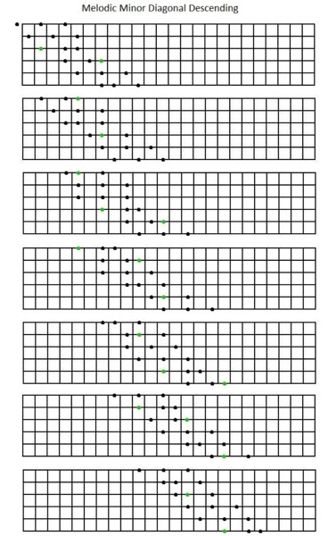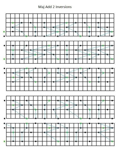 The arpeggio exercise in Extras can be used with any mode, following the movements of stacked intervals. A person may make up other simple or more elaborate arpeggio exercises
